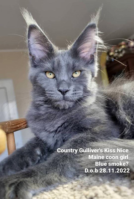 Мейн Кун / female maine coon Country Gulliver's Kiss sweet Окрас- голубой дымчатый (as) Тесты HCM, PKdef, SMA - N/N ![]() Кошка мейн кун Свит |