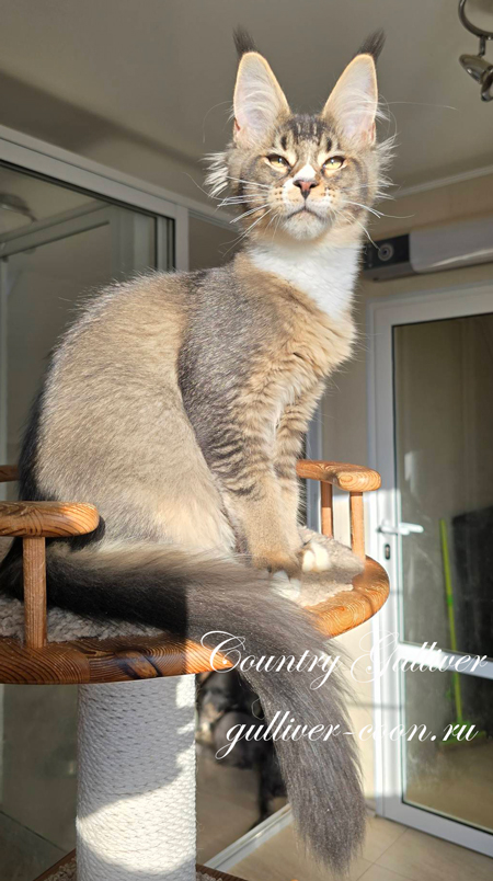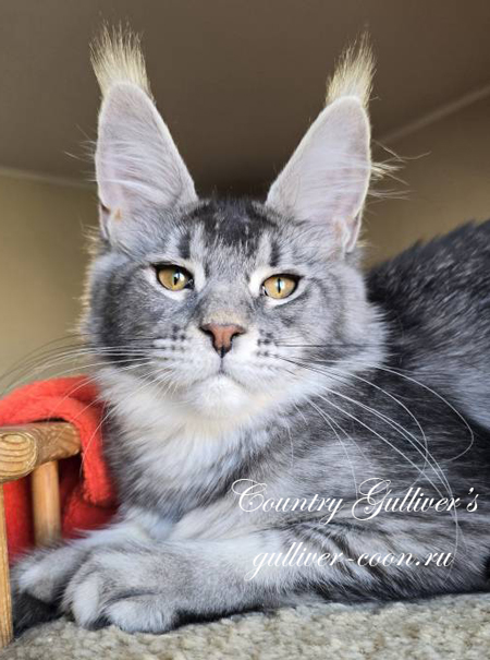 Мейн Кун / male maine coon - Country Gulliver's Mirage Snow окрас - черный затушеванный (ns 11) Тесты HCM, PKdef, SMA - N/N ![]() Кот мейн кун Мираж |