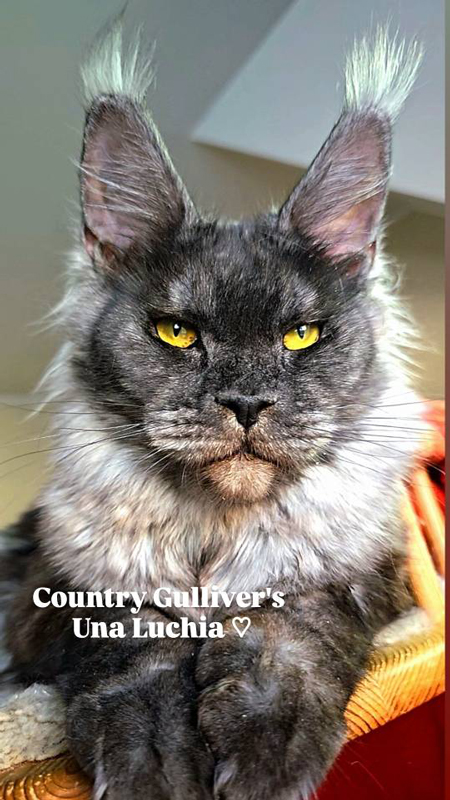 Мейн Кун / female maine coon Country Gulliver's Wild Berry Окрас - черный дымчатый ( ns ) Тесты HCM, PKdef, SMA - N/N ![]() Кошка мейн кун Бэрри |