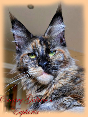 Мейн Кун / female maine coon Country Gulliver's Euphoria Kiss черный черепаховый дымчатый (fs) Тесты HCM, PKdef, SMA - N/N ![]() Кошка мейн кун Эфи |