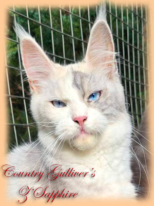 Мейн Кун / female maine coon Country Gulliver's Z'Sapphire - черепаховый затушеванный с белым и с голубыми глазами (gs 11 09 61) Тесты HCM, PKdef, SMA - N/N ![]() Кошка Сапфира |